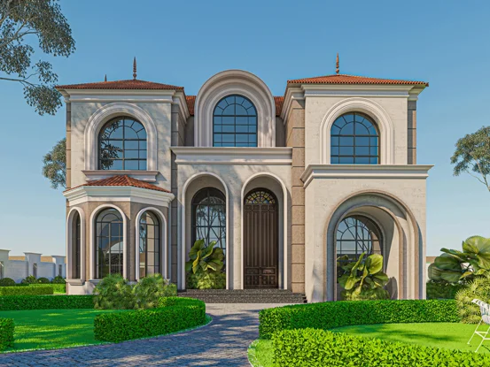 This luxury neoclassical villa in Abu Dhabi combines timeless architectural elegance with modern functionality. Featuring symmetrical facades, arched windows, and detailed ornamentation, the villa reflects sophistication while offering spacious interiors, landscaped surroundings, and a harmonious connection between indoor and outdoor spaces. The project exemplifies Archivara’s expertise in delivering distinguished designs with precision and grandeur.