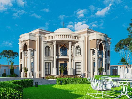 This Luxury Neoclassical Villa in Abu Dhabi exemplifies elegance, symmetry, and refined craftsmanship. Designed to reflect both prestige and comfort, the villa incorporates grand columns, arched windows, and a central dome that highlight timeless architectural traditions. The project balances aesthetic beauty with modern functionality, creating a residence that is not only visually striking but also highly livable. With carefully planned layouts, expansive interiors, and lush landscaping, the villa offers an environment of luxury, privacy, and sophistication. Through advanced 3D visualization, every detail was perfected prior to execution, ensuring the final result embodies the client’s vision of a distinguished family residence.