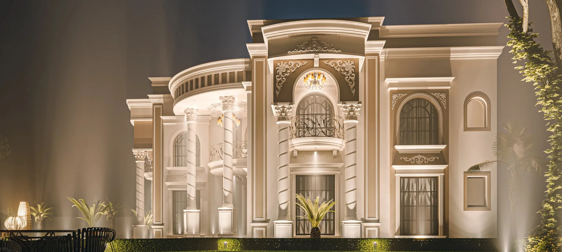 One of the main challenges was preserving the authenticity of neoclassical design while integrating the conveniences of a modern home. The project required careful attention to scale, symmetry, and proportion while ensuring the villa remained functional for contemporary living. The expansive façade demanded structural accuracy, while the landscaping had to be designed to soften the bold architectural presence. Achieving the right balance between privacy and natural light also presented a unique challenge for both the architects and designers.