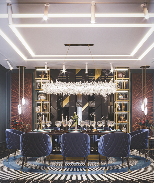 The main challenge of this project was balancing luxury with practicality. The dining space needed to feel grand yet not overwhelming, while also being comfortable for everyday use. Achieving perfect harmony between rich textures, bold patterns, and functional design required meticulous planning. Lighting was another challenge, as it had to enhance the room’s opulence without creating glare or disrupting the dining atmosphere.